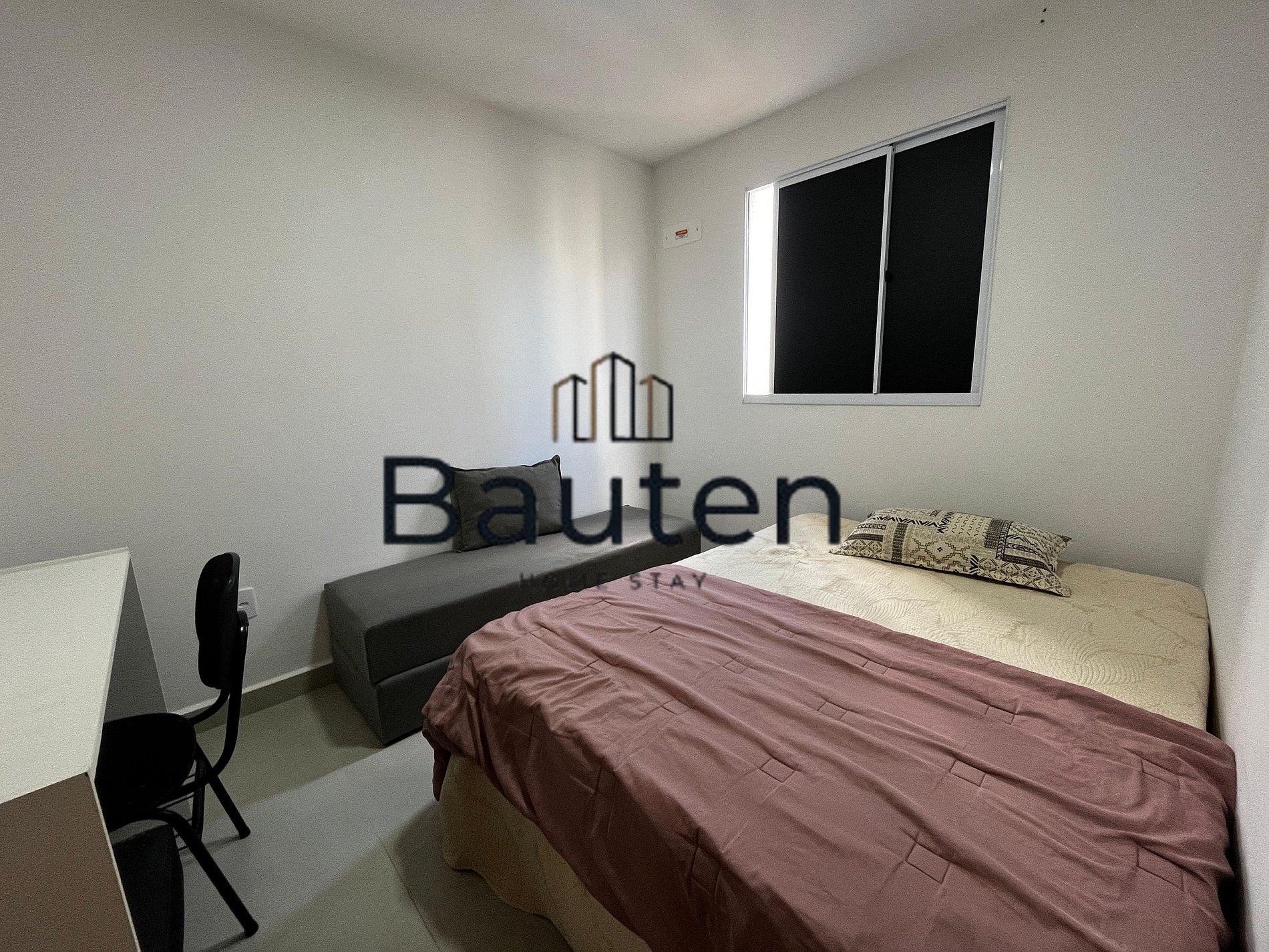 Apartamento de dois quartos no Condomínio Caminho das Bromélias em Caruaru. Ambiente aconchegante, com sala, cozinha equipada, banheiro social e vaga de garagem. O condomínio oferece piscinas, salão de festas, espaço gourmet, playground e segurança 24 horas. Localização privilegiada, próximo ao Caruaru Shopping e serviços essenciais. Ideal para famílias, grupos ou viajantes a trabalho.